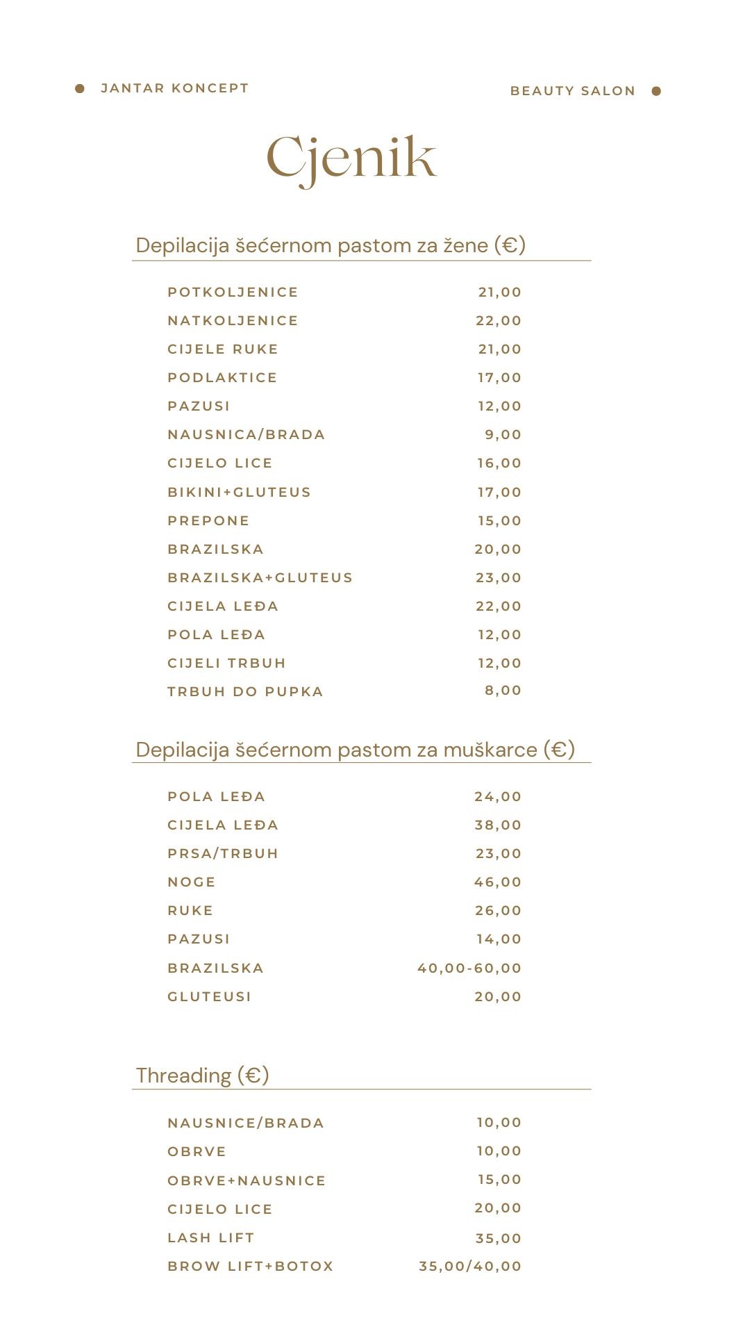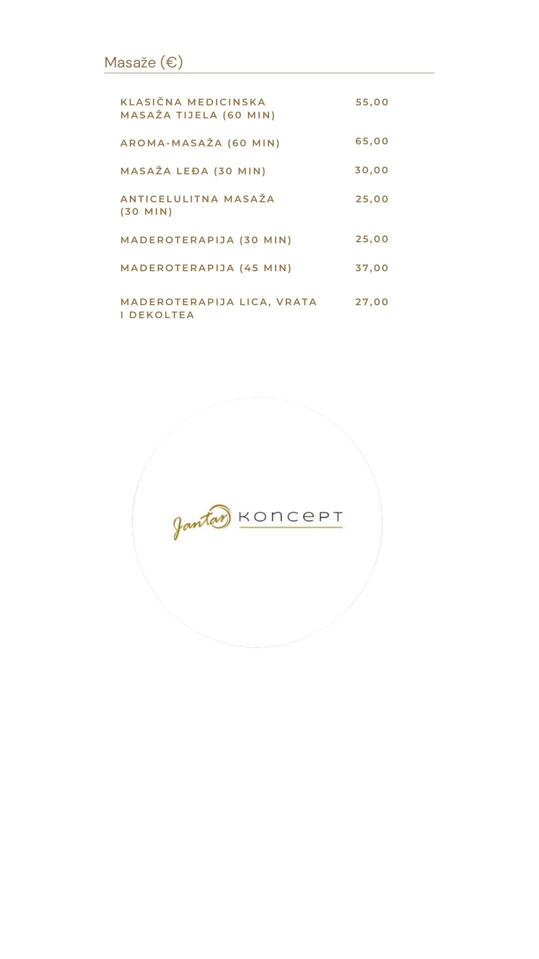 U Jantar Konceptu vjerujemo da je briga o tijelu i koži puno više od samog tretmana – to je trenutak koji posvećujete sebi. Naš salon nastao je s idejom da spojimo profesionalnu njegu, prirodne metode i opuštajući ambijent kako bi svaki klijent osjetio ravnotežu ljepote i unutarnjeg mira.
